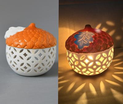 手工雕刻陶瓷松果蠟燭罐